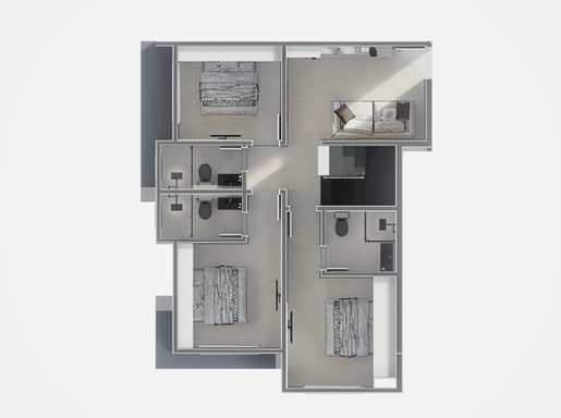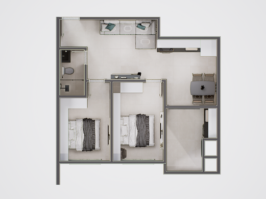 Os apartamentos, de estilo moderno e acabamentos de alto padrão, oferecem espaços bem planejados, amplos e iluminados, ideais para famílias e pessoas que desejam um refúgio tranquilo sem abrir mão da conveniência.